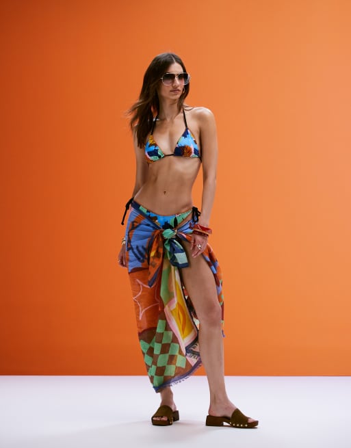 ASOS DESIGN – Barbara – Bikini mit Detail in Seiloptik und abstraktem Muster