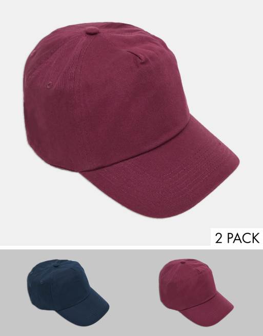 ASOS DESIGN – Baseballkappen im 2er-Pack in Marineblau und Burgunderrot, Rabatt