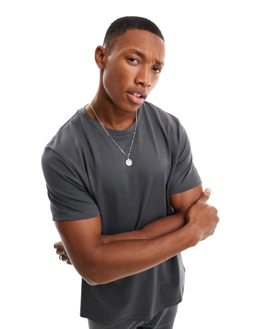 ASOS DESIGN – Basic-T-Shirt aus 240 g/m² schwerem Stoff in Anthrazit mit Rundhalsausschnitt