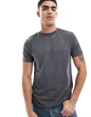 ASOS DESIGN – Basic-T-Shirt in meliertem Anthrazit mit Rundhalsausschnitt