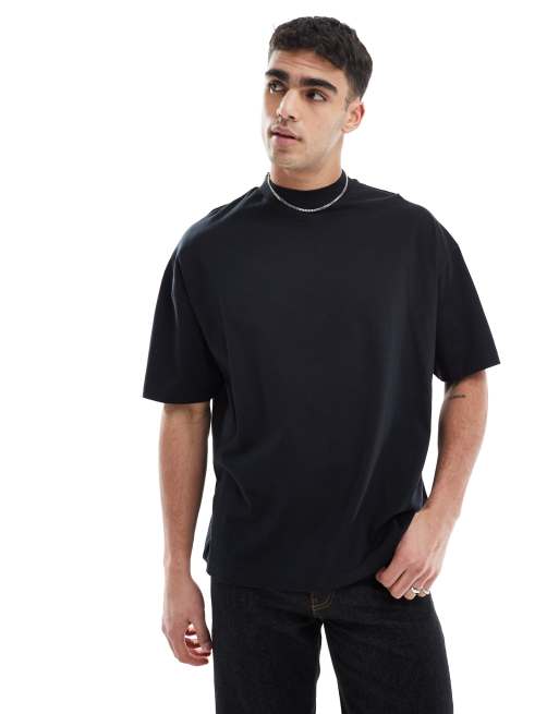 ASOS DESIGN – Basic-T-Shirt in Schwarz mit hohem Ausschnitt und Oversize-Schnitt