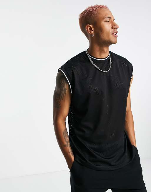 ASOS DESIGN – Baskettball-Trägertop aus Netzstoff in Schwarz
