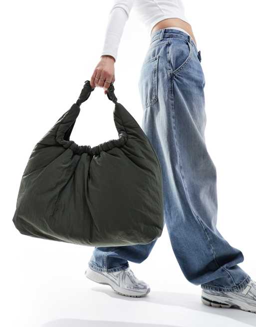 ASOS DESIGN – Bauschige Oversize-Tragetasche aus Nylon in Khaki