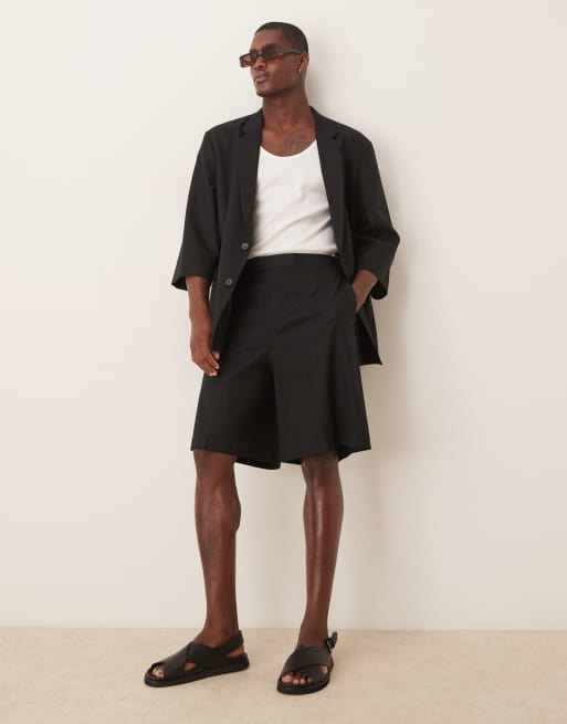 ASOS DESIGN – Bermudashorts aus Leinenmix in Schwarz mit elastischem Bund