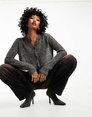 ASOS DESIGN – Besonders kurz geschnittene Strickjacke aus transparentem Garn in Grau