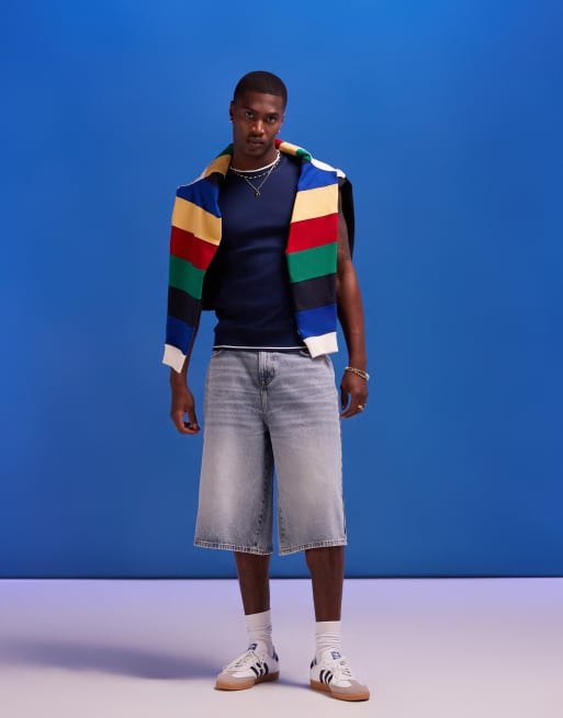 ASOS DESIGN – Besonders lang geschnittene Jeans-Jorts in hellblauer Waschung