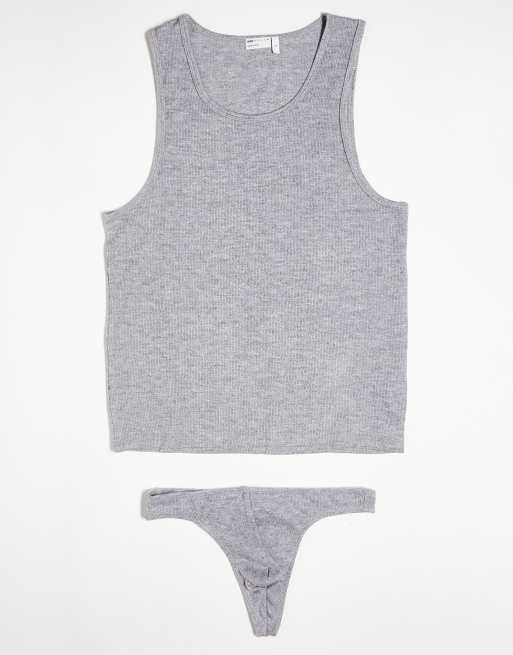 ASOS DESIGN – Besonders weiches, geripptes Unterwäsche-Set bestehend aus Trägertop und Tanga