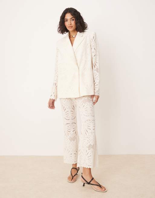 ASOS DESIGN – Blazer in Cremeweiß mit Stickerei, Kombiteil