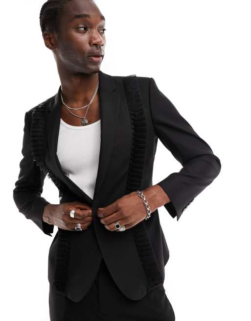 ASOS DESIGN – Blazer in Schwarz mit engem Schnitt und Rüschen