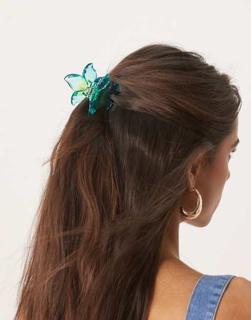 ASOS DESIGN – Blumen-Haarkralle mit blauem Farbverlauf