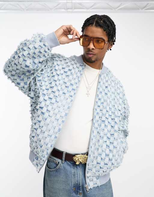 ASOS DESIGN – Bomberjacke aus Denim mit Schachbrettmuster und extremer Oversize-Passform