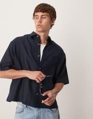 ASOS DESIGN – Boxy Fit Oversize-Hemd in Marineblau aus 100% Leinen