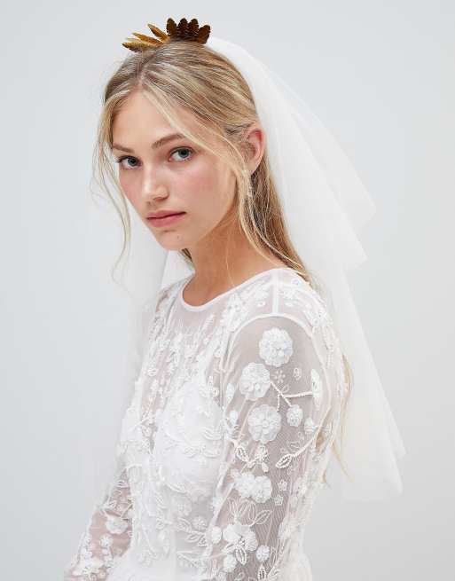 ASOS DESIGN – Brautschleier mit Metallblatt und Kristallperlen