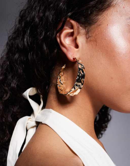 ASOS DESIGN – Breite Creolen in gehämmerter Gold-Optik