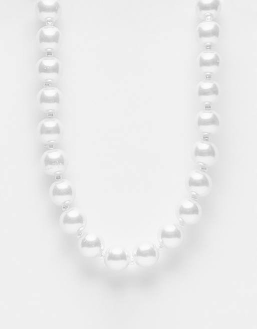 ASOS DESIGN – Breite Halskette in Weiß mit 12 mm dicken Glas-Kunstperlen