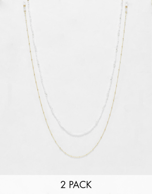 ASOS DESIGN – Brillenkette aus winzigen Kunstperlen und goldfarbene Kette mit Punkt- und Stabdesign, 2er-Pack