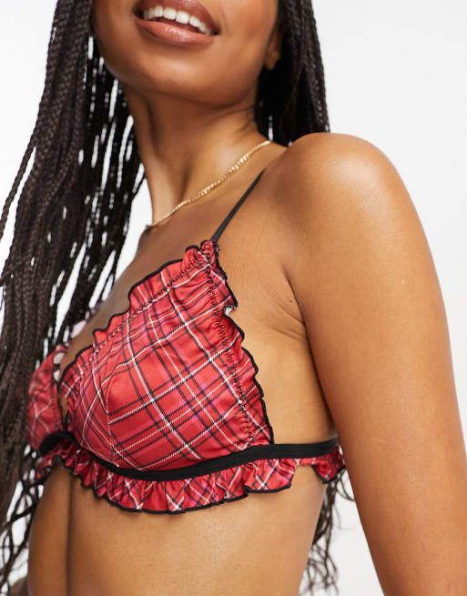 ASOS DESIGN – Brodie – Set aus rotem Satin mit Schottenkaro