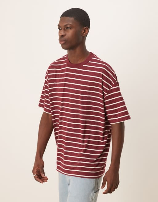 ASOS DESIGN – Burgunderrot-weiß gestreiftes Oversize-T-Shirt