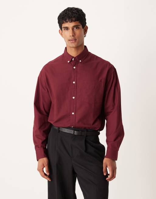 ASOS DESIGN – Burgunderrotes Oxford-Hemd im 90er-Stil mit Oversize-Passform