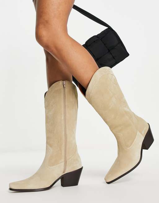 ASOS DESIGN – Cactus – Premium-Westernstiefel aus Wildleder in Sandbeige