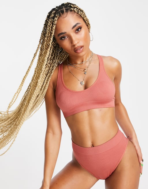ASOS DESIGN – Callie – Set mit Waffelstruktur in Rostrot