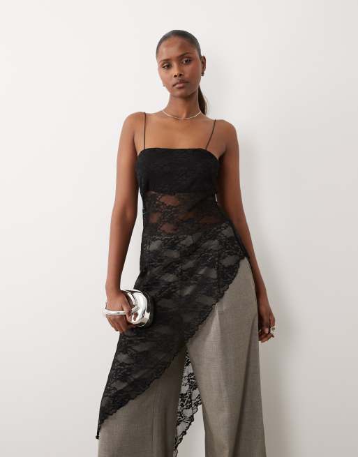 ASOS DESIGN – Camisole-Oberteil aus Spitze in Schwarz mit asymmetrischem Saum
