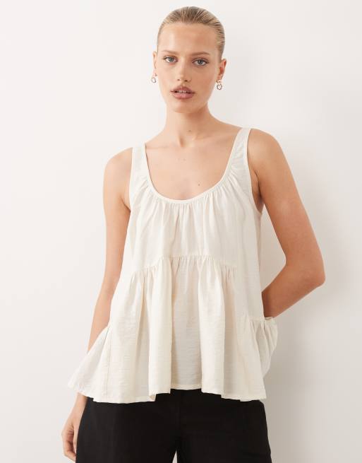 ASOS DESIGN – Camisole-Oberteil in Champagner mit U-Ausschnitt und Schößchen