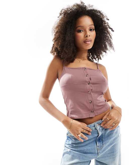 ASOS DESIGN – Camisole-Trägertop in Rosa mit Hornknöpfen