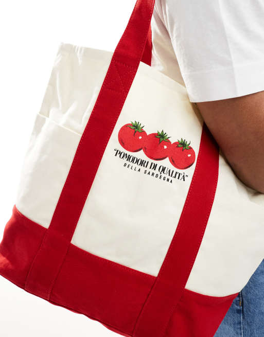 ASOS DESIGN – Canvas-Shopper in Ecru mit Tomaten-Print in Rot