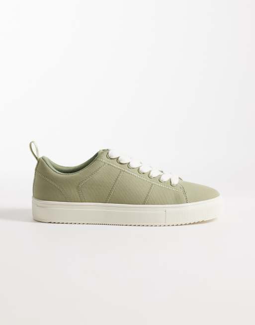 ASOS DESIGN – Canvas-Sneaker zum Schnüren in Khaki mit Ziernaht
