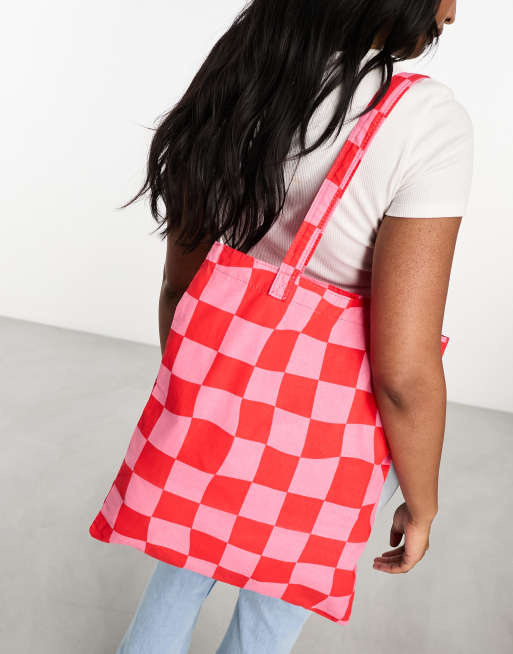 ASOS DESIGN – Canvas-Tragetasche in Rosa und Rot mit Schachbrettmuster