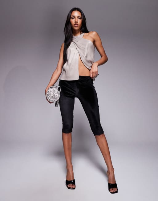 ASOS DESIGN – Capri-Schlupfhose aus Samt in Schwarz
