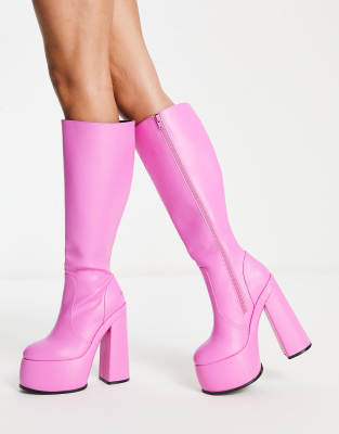 ASOS DESIGN – Captivate – Kniehohe Stiefel in Rosa mit extremer Plateausohle