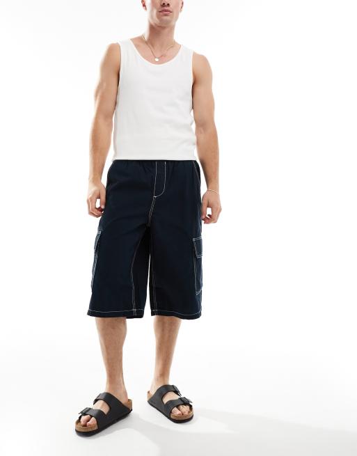 ASOS DESIGN – Cargoshorts in Marineblau mit Kontrastnaht