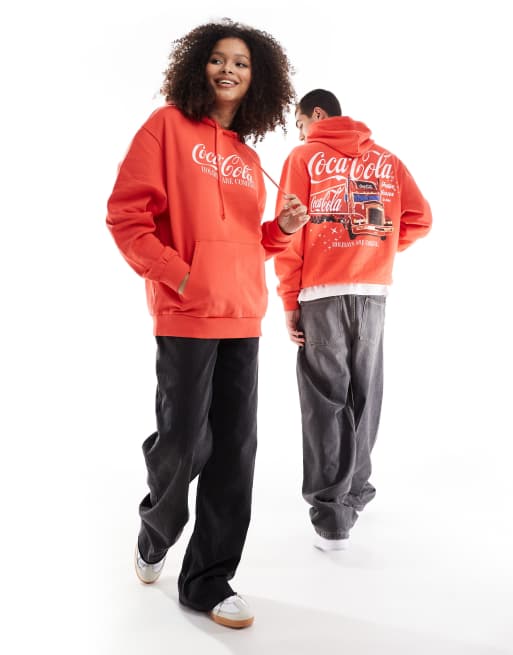 ASOS DESIGN – Christmas – Weihnachtlicher Unisex-Pullover in Rot mit festlichem Coca Cola-Print und Oversize-Passform