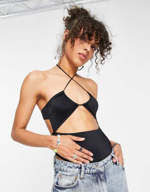 ASOS DESIGN – Ciara – Body in Schwarz mit Cut-Out