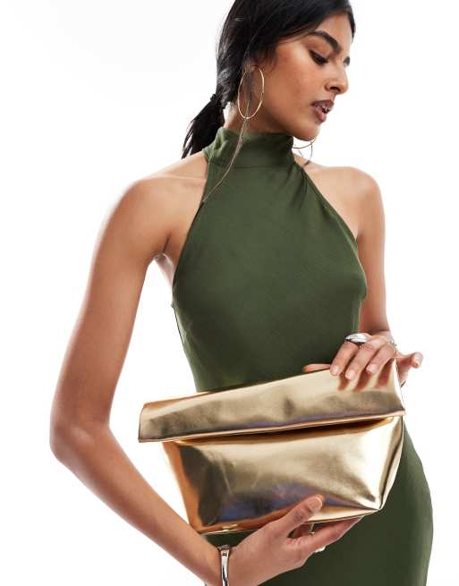 ASOS DESIGN – Clutch in Gold mit Roll-Top-Verschluss