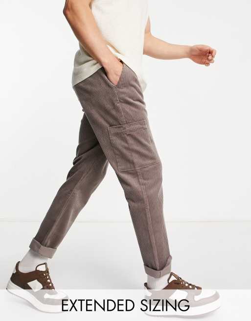 ASOS DESIGN – Cordhose in Hellgrau mit schmalem Schnitt und Cargo-Taschen