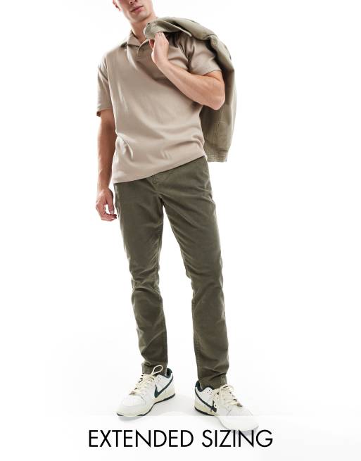 ASOS DESIGN – Cordhose in Khaki mit konischer Passform und elastischem Bund