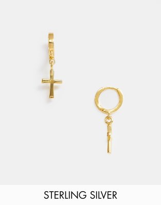 ASOS DESIGN – Creolen aus Sterlingsilber mit Kreuzanhängern und 14-karätiger Vergoldung