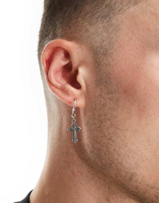 ASOS DESIGN – Creolen in polierter Silberoptik mit Kreuzanhänger