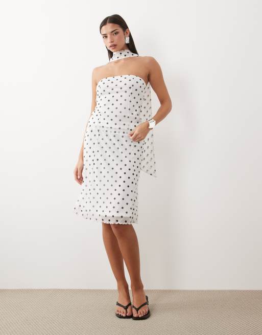 ASOS DESIGN – Cropped-Midirock mit Polka Dots und Besatz im Asia-Stil