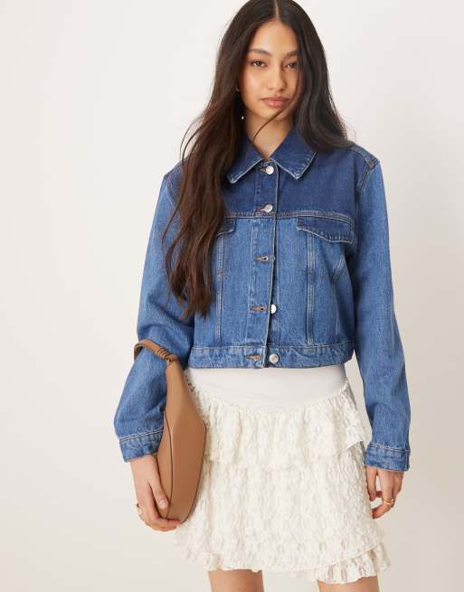 ASOS DESIGN – Cropped-Westernjacke mit zweifarbigen Bahnen