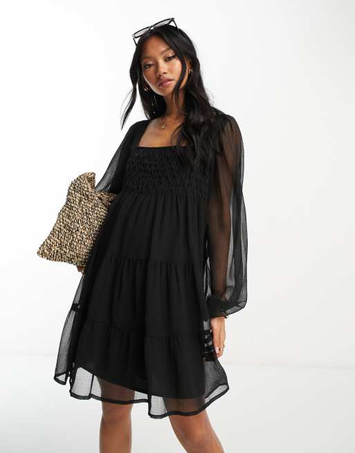 ASOS DESIGN – Crosshatch – Mini-Hängerkleid in Schwarz mit eckigem Ausschnitt und Einfassung