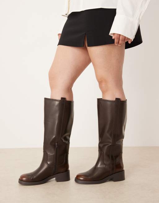 ASOS DESIGN Curve – Conan – Klobige Schlupfstiefel in Schokobraun