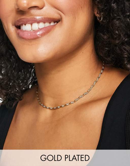 ASOS DESIGN Curve – Kurze Choker-Halskette mit 14-Karat-Vergoldung und verdrehtem Wellendesign