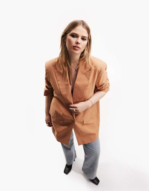 ASOS DESIGN Curve – Perfect – Lang geschnittener Blazer in Zartrosa