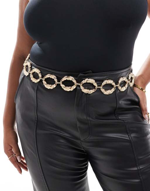 ASOS DESIGN Curve – Strukturierter Kettengürtel in Goldoptik mit abgerundeten, klobigen Gliedern