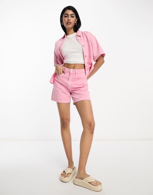ASOS DESIGN – Dad-Shorts aus Denim in Rosa, Kombiteil