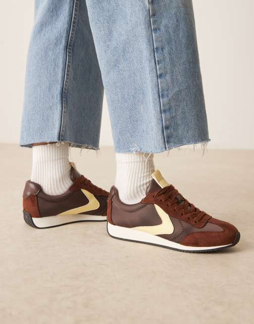 ASOS DESIGN – Daily – Laufschuhe zum Schnüren in Braun und Gelb